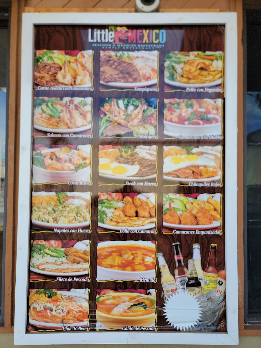 The menu at Little Mexico Restaurant offers a straightforward and inviting selection of Mexican and seafood dishes, perfect for casual dining and family gatherings. Whether you're stopping by for a quick bite or settling in for a relaxed meal, the variety here caters to different appetites and times of day.